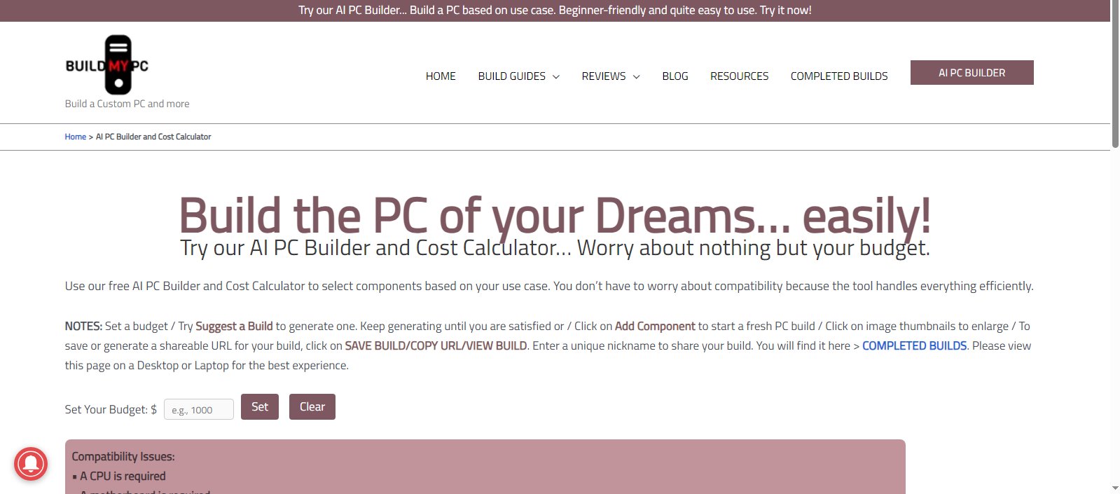 The AI PC Builder tool enables users to assemble a PC based on budget and use case, without worrying about parts compatibility. Users are required to simply enter a budget, choose a platform [Intel or AMD], and choose a major use case [Gaming, Streaming, Content Creation, Workstation, Web Server, Crypto Mining, Plex Server, Office PC]. The user may choose from 2 options [Suggest A Build] for beginners and inexperienced builders who don't know exactly what parts they want, OR [Add Components], for more experienced builders. Clicking a button [Suggest A Build] will generate PC parts based on earlier the entered criteria. This action can be repeated indefinitely until the user is satisfied with a particular build, which they can share, save, email to someone or themselves, or purchase from Amazon [more marketplaces coming]. Alternatively, the user may choose to put together a custom PC using a button [Add Components]. This is for experienced users who know exactly what parts they want. It allows them to add components one by one. Once they are satisfied with the build, they can also share by social media or email, save the build, or purchase via Amazon. Saved builds are public and appear on the Completed Builds page. Users can edit any build, share, or purchase them. The user doesn't need to register an account in order to use the tool. It's entirely free!